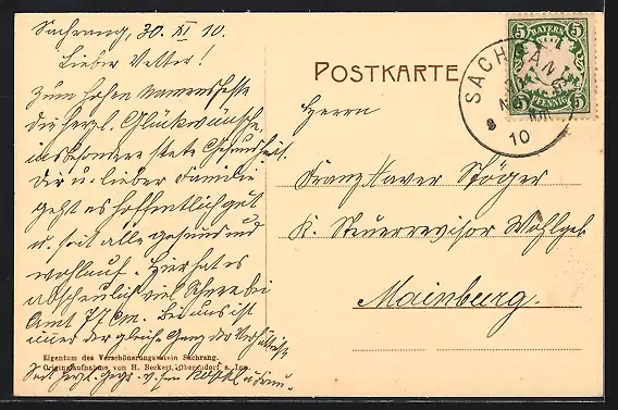 alte Ansichtskarte, gelaufen 1910, guter Zustand
