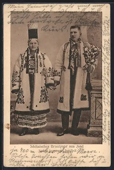 AK Sächsisches Brautpaar aus Jaad in Tracht