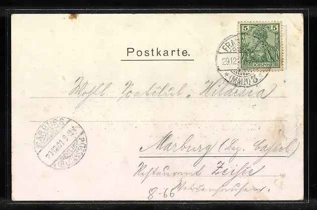 alte Ansichtskarte, gelaufen 1901, Eckknick li. oben, guter Zustand