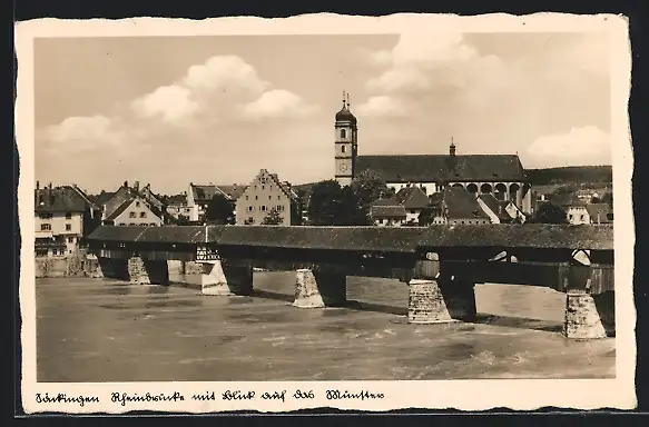 AK Säckingen, Rheinbrücke mit Blick auf Münster