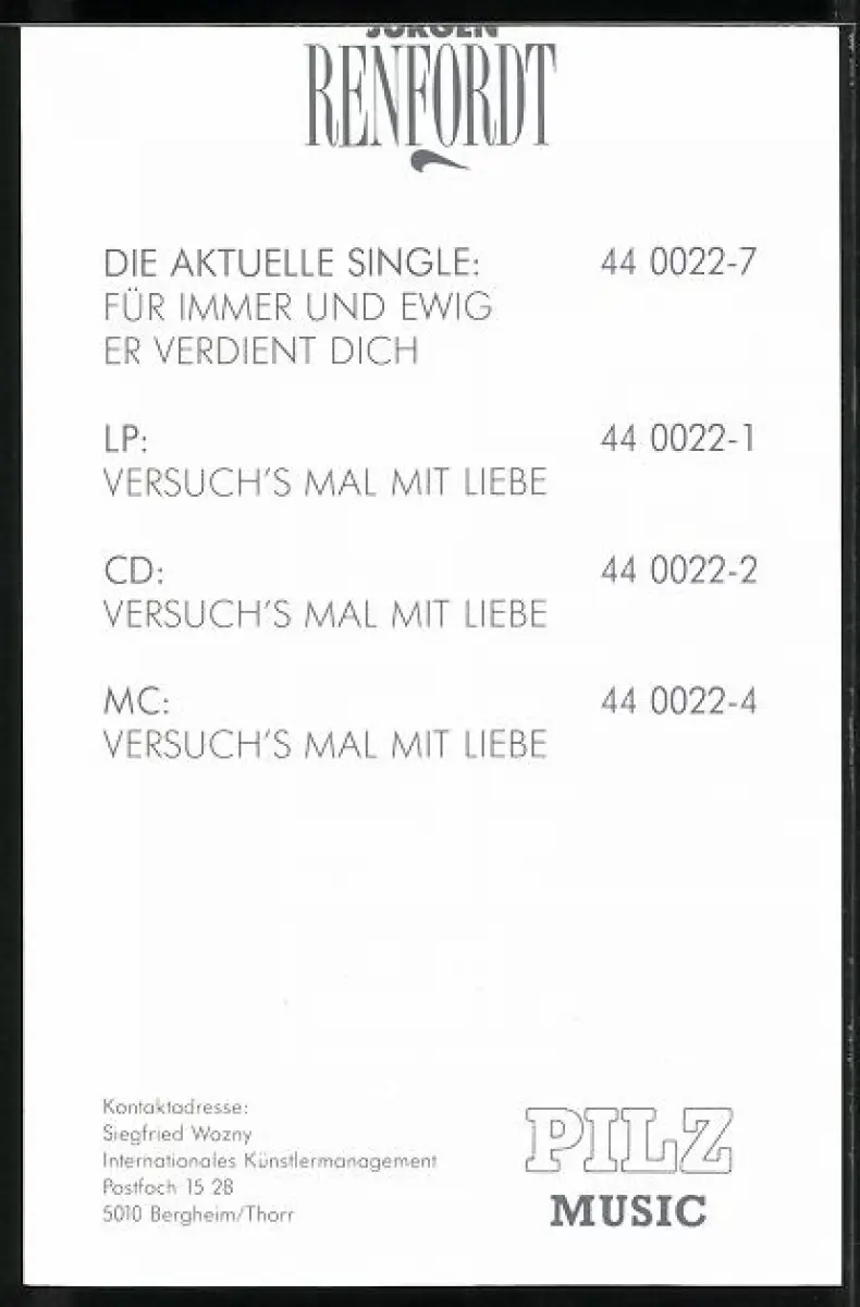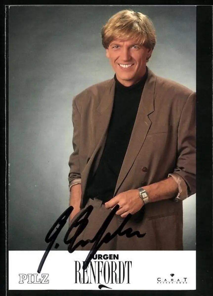 AK Sänger Jürgen Renfordt im brauen Sakko portraitiert, Autograph