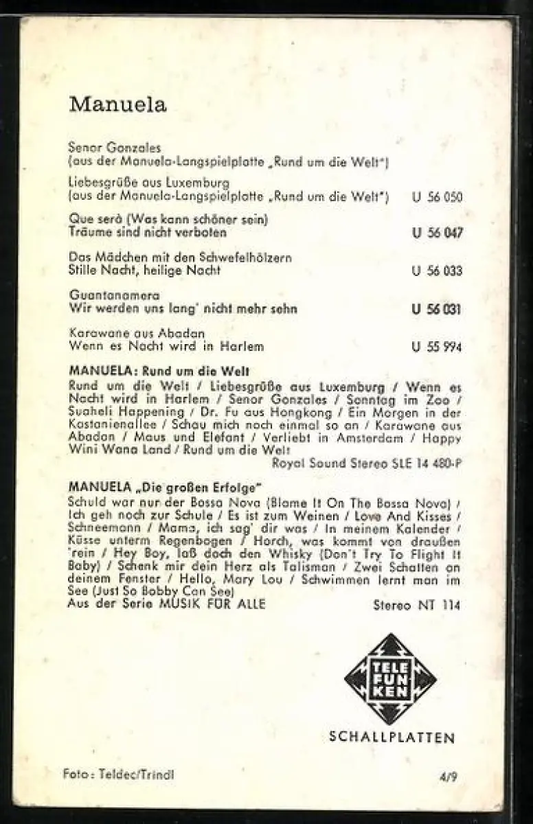 AK Sängerin Manuela lachend nach oben blickend, Autograph