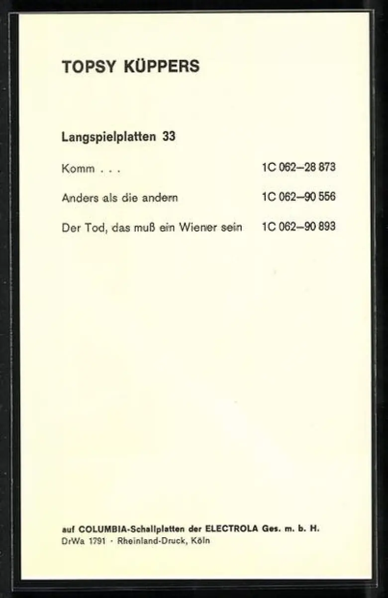 AK Sängerin Topsy Küppers lächelt freundlich den Betrachter an, Autograph