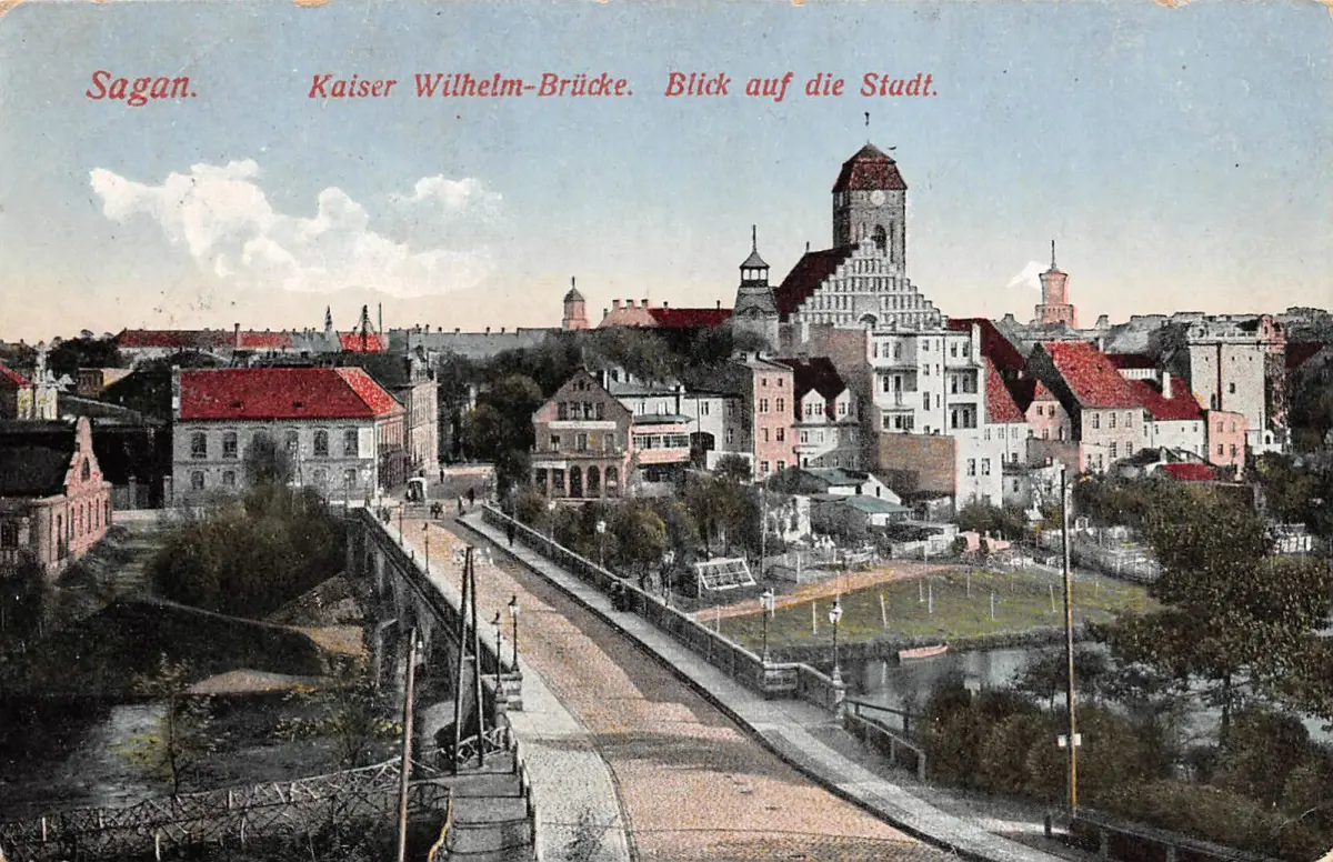 AK Sagan Schlesien Kaiser Wilhelm - Brücke Postkarte 1915