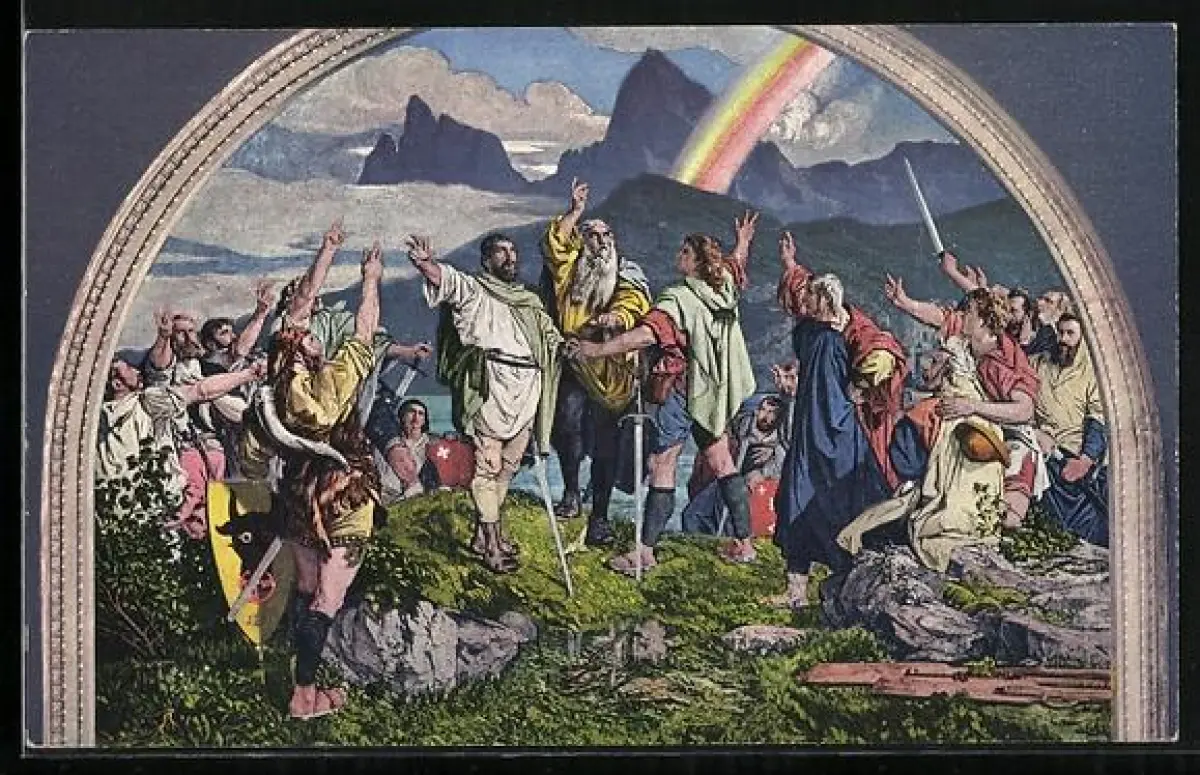 AK Sage: Der Rütlischwur, Wandgemälde von Dr. Stückelberg in der Tellskapelle