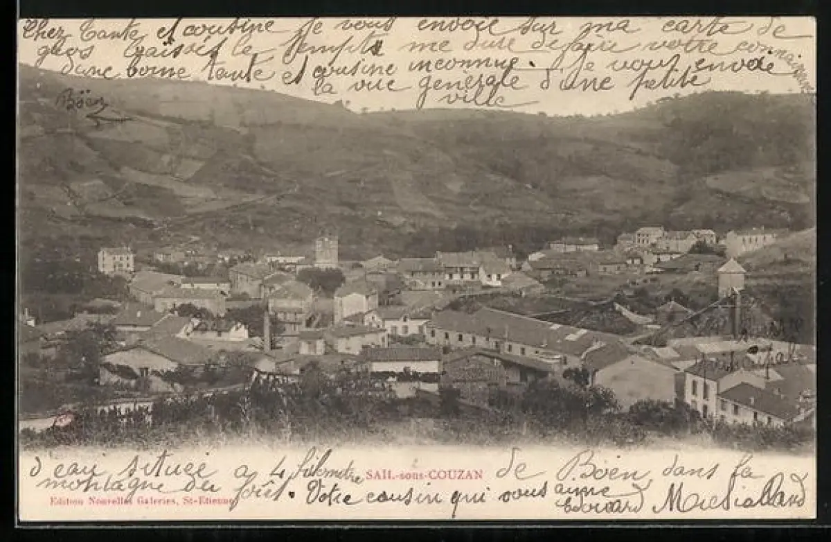 AK Sail-sous-Couzan, Vue générale du village et des collines environnantes