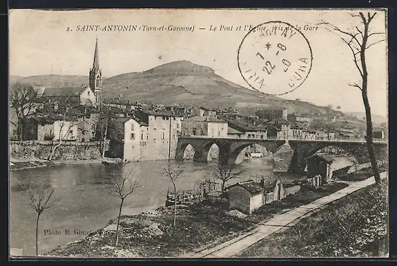 AK Saint-Antonin, Le Pont et l`Église, vue de la Gare