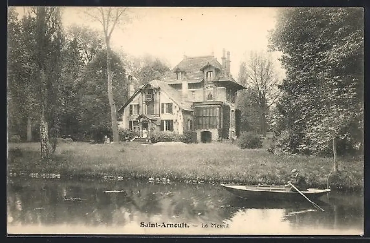 AK Saint-Arnoult, Le Mesnil avec vue sur la rivière et une barque à l`avant-plan