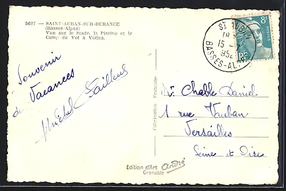 AK Saint-Auban-sur-Durance, Vue sur le Stade, la Piscine et le Camp de Vol à Voiles