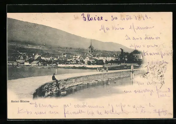 AK Saint-Blaise, Ortsansicht mit Uferpartie