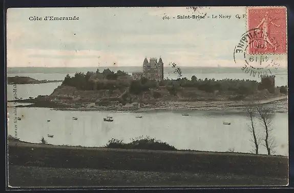 AK Saint-Briac, Vue du château sur l`île et des barques à la Côte d`Émeraude