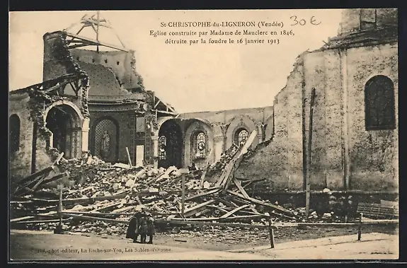 AK Saint-Christophe-du-Ligneron, Eglise détruite par la foudre le 16 Janvier 1913