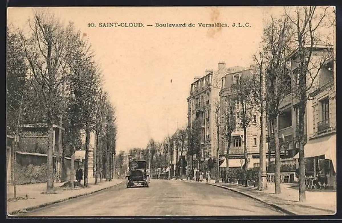 AK Saint-Cloud, Boulevard de Versailles avec voitures anciennes