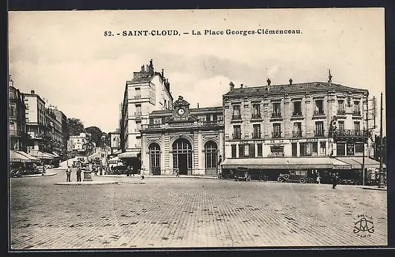 AK Saint-Cloud, La Place Georges-Clémenceau avec bâtiments historiques et voitures anciennes