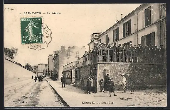 AK Saint-Cyr, La Mairie et passants devant le bâtiment administratif