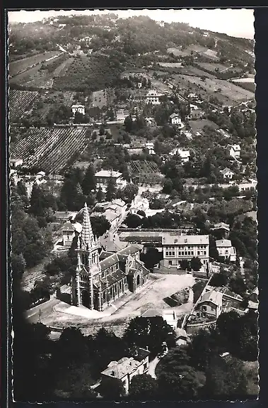 AK Saint-Cyr-au-Mont-d`Or, Vue aérienne de l`église et des vignobles environnants