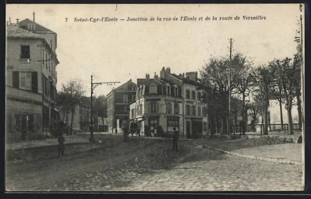 AK Saint-Cyr-l`École, Jonction de la rue de l`École et de la route de Versailles