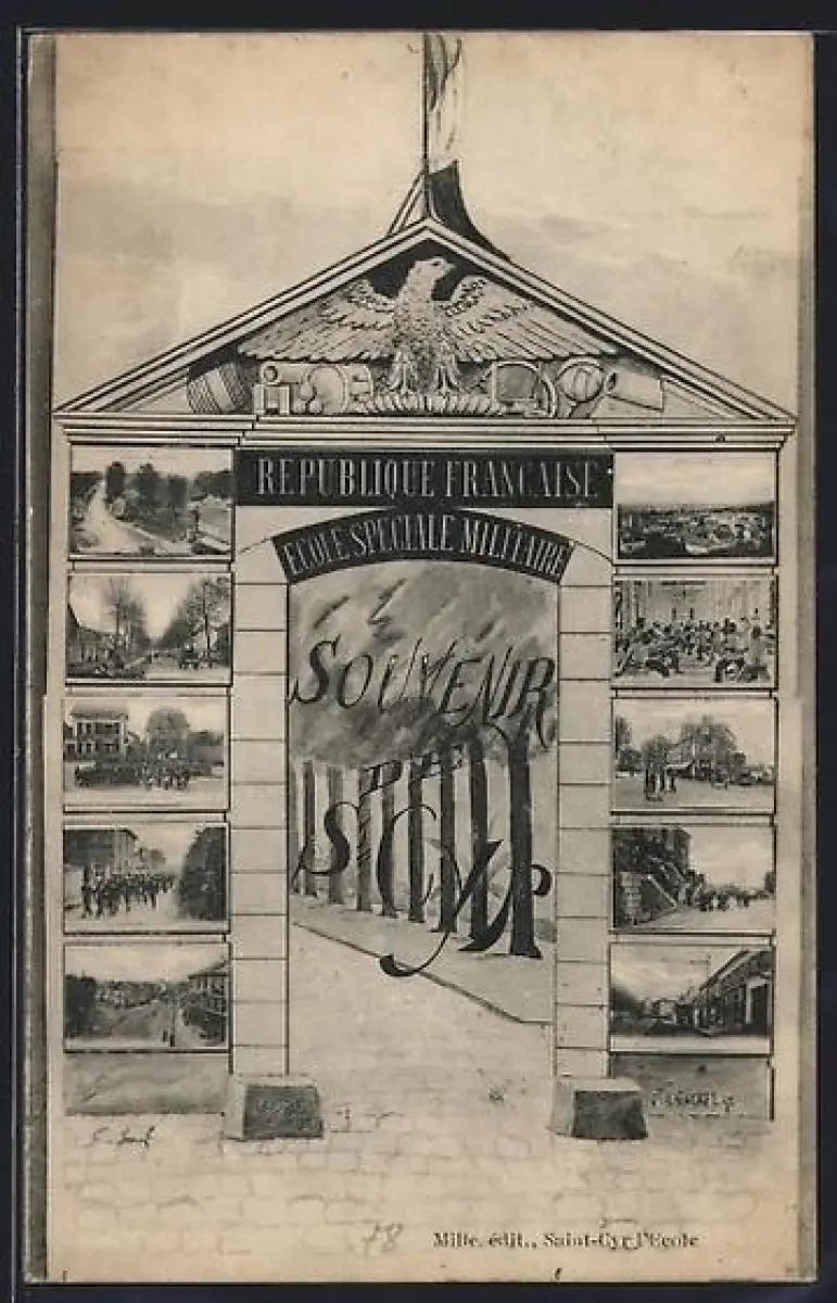 AK Saint-Cyr-l`École, Souvenir de l`École Spéciale Militaire avec divers bâtiments et scènes