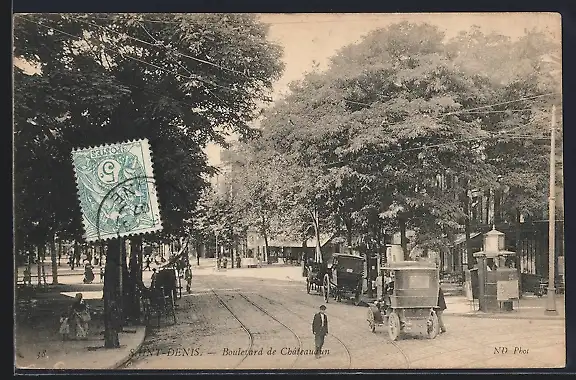 AK Saint-Denis, Boulevard de Châteaudun avec voitures et piétons sous les arbres