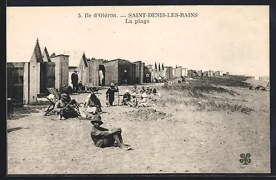 AK Saint-Denis-les-Bains, La plage avec cabines de bain et vacanciers