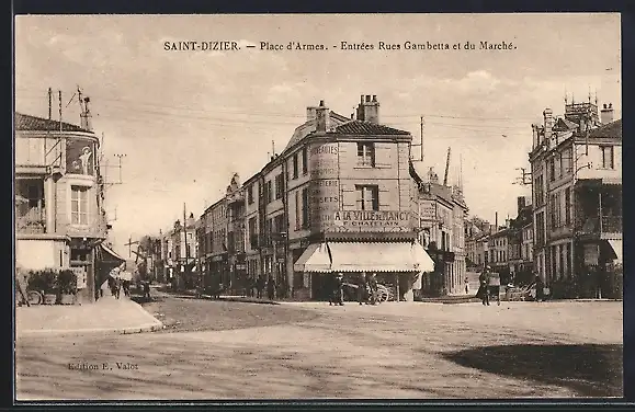 AK Saint-Dizier, Place d`Armes, Entrées Rues Gambetta et du Marché