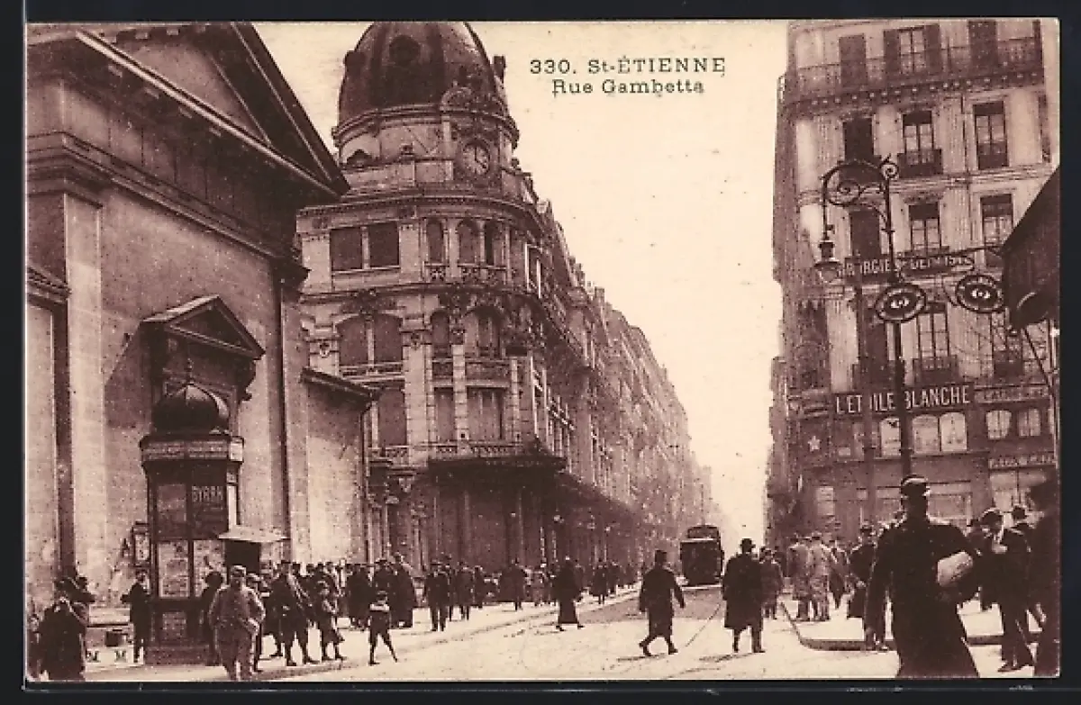 AK Saint-Étienne, Rue Gambetta, Strassenbahn