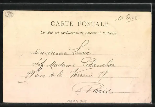 Personenbezogene Daten auf der Rückseite der Karte wurden durch blauen Textmarker unkenntlich gemacht. Die blauen Stellen sind auf die Vorderseite durchgeweicht und wirken sich negativ auf das Postkartenfoto aus