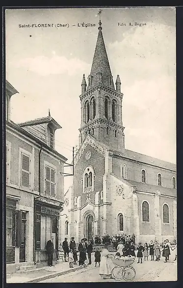 AK Saint-Florent, L`église et la foule rassemblée devant l`édifice