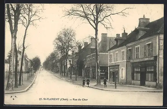 AK Saint-Florent, Rue du Cher avec arbres et bâtiments alignés