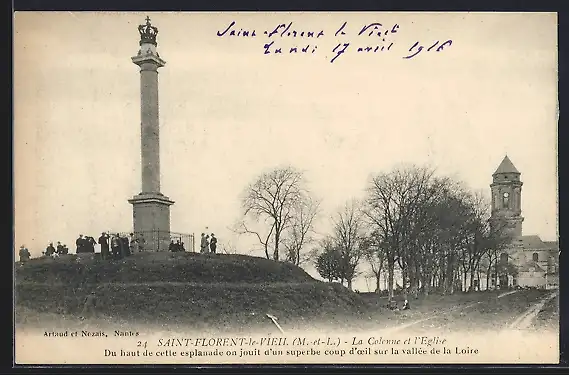 AK Saint-Florent-le-Vieil, La Colonne et l`Église avec vue sur la vallée de la Loire
