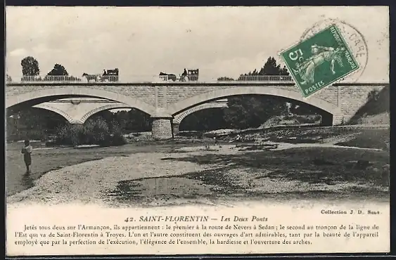AK Saint-Florentin, Les Deux Ponts sur l`Armance avec élégance architecturale et paysage environnant