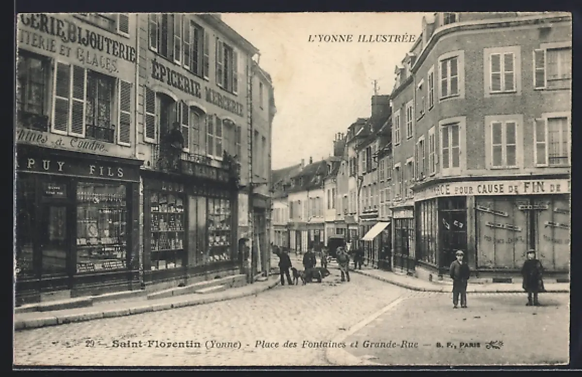AK Saint-Florentin /Yonne, Place des Fontaines et Grande-Rue