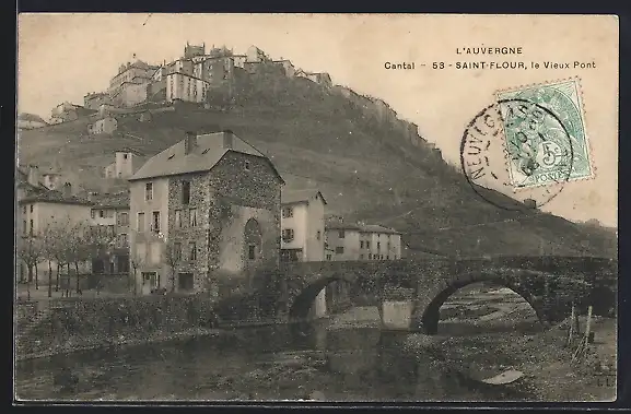 AK Saint-Flour, le Vieux Pont et vue sur la colline environnante