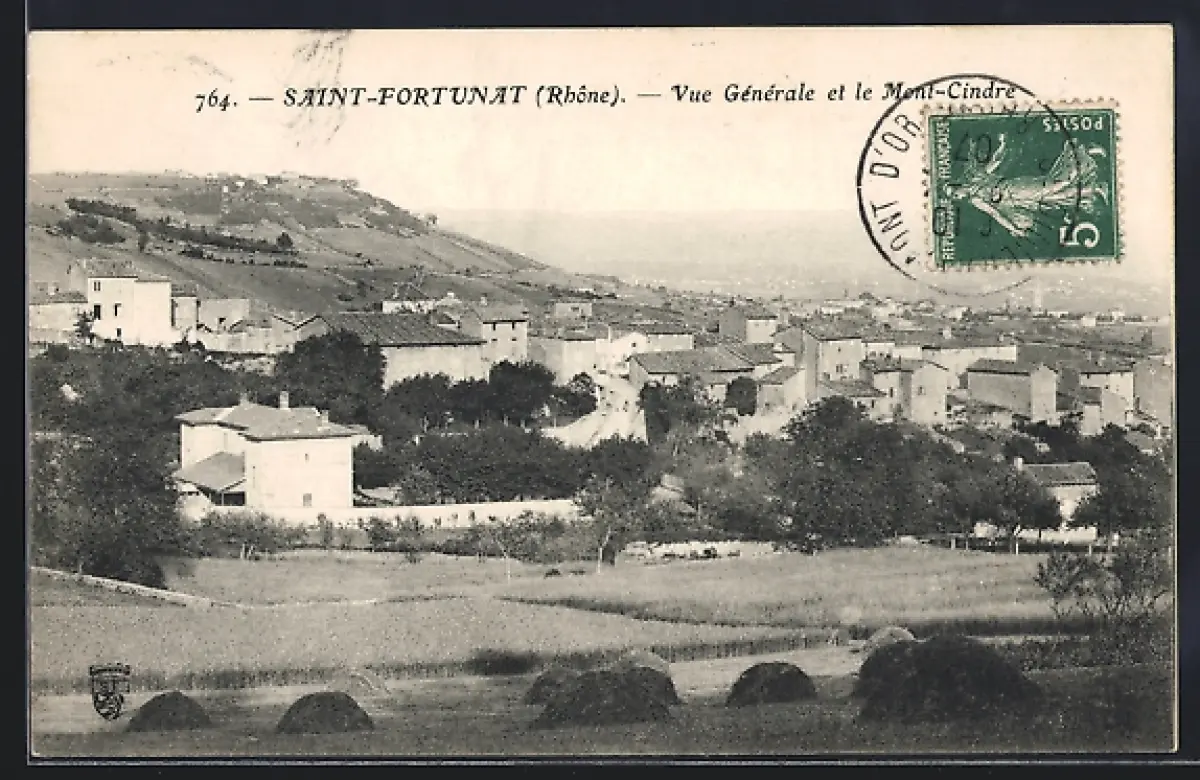 AK Saint-Fortunat /Rhône, Vue générale et le Mont-Cindre