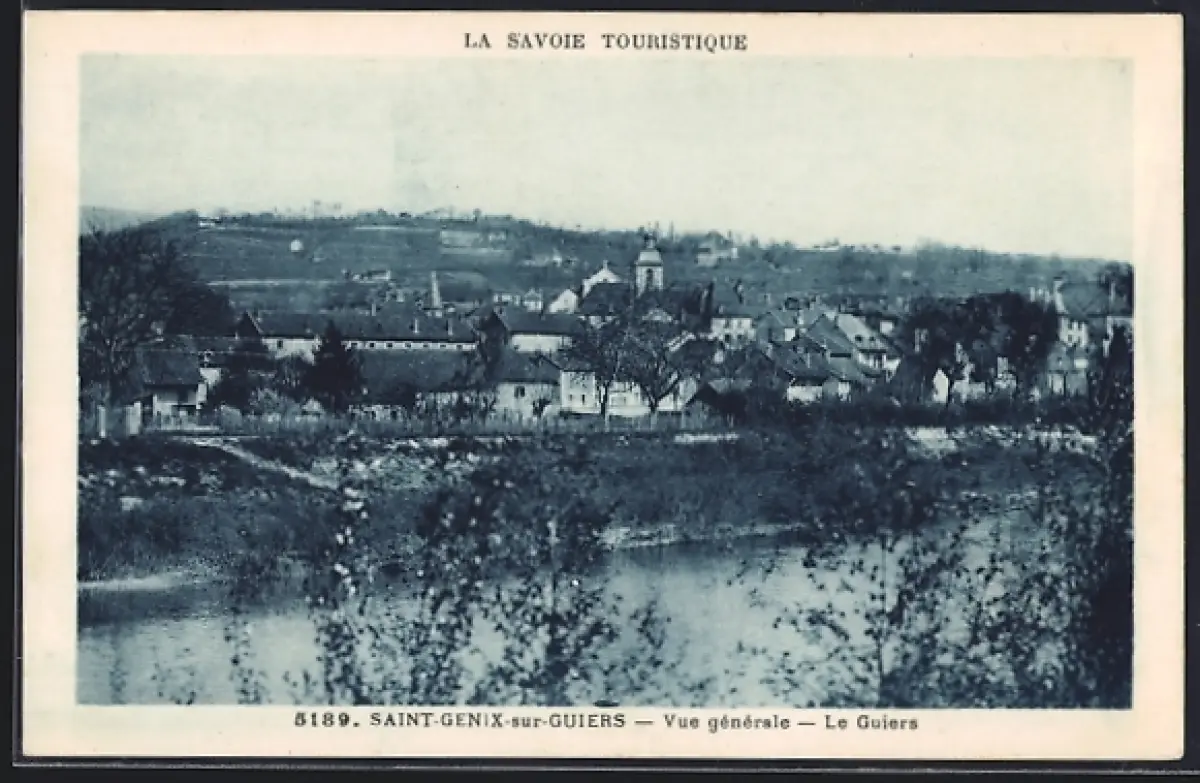 AK Saint-Genix-sur-Guiers, Vue générale du village et du Guiers