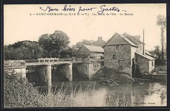 AK Saint-Germain-sur-Ille, Les bords de l`Ille, Le Moulin