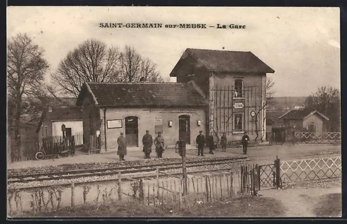 AK Saint-Germain-sur-Meuse, Gare avec voyageurs sur le quai
