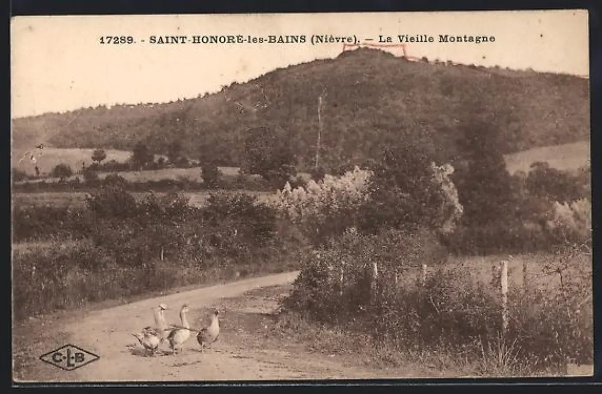 AK Saint-Honoré-les-Bains /Nièvre, La Vieille Montagne et chemin avec des oies