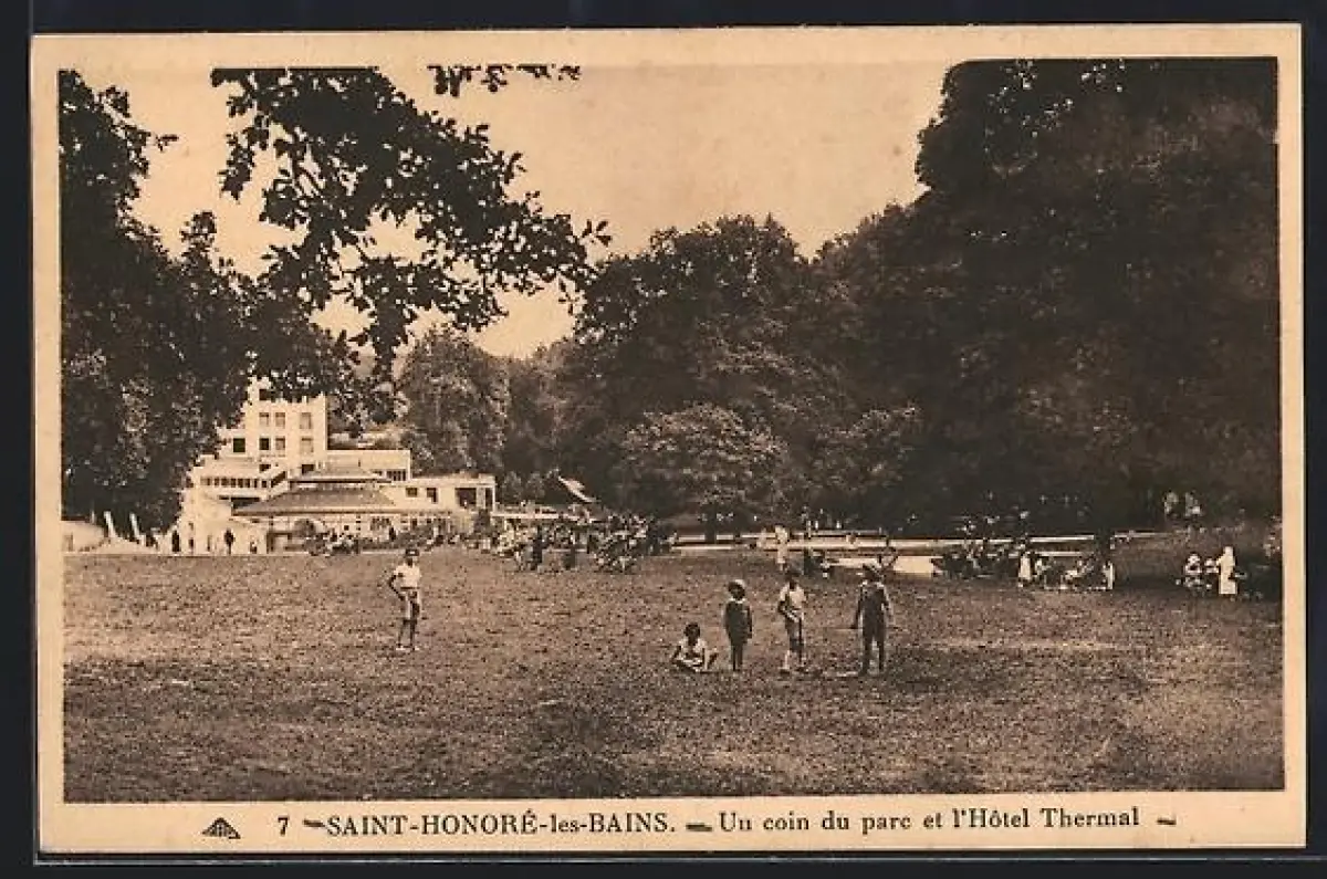 AK Saint-Honoré-les-Bains, Un coin du parc et l`Hôtel Thermal