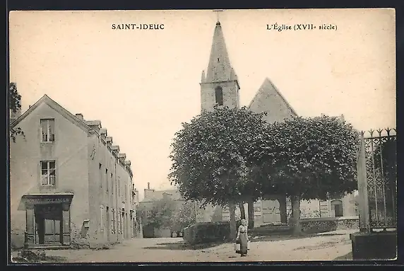 AK Saint-Ideuc, L`Église, XVIIe siècle, et rue avec des arbres