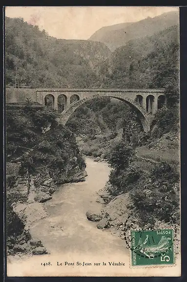 AK Saint-Jean, Le Pont sur la Vésubie avec paysage montagneux