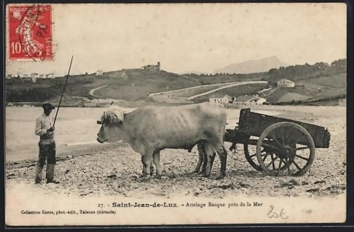 AK Saint-Jean-de-Luz, Attelage Basque près de la Mer