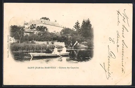AK Saint-Jean-lès-Marville, Château des Capucins et canot sur la rivière