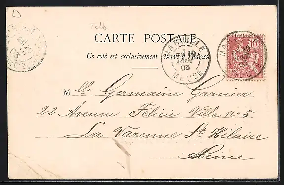 alte Ansichtskarte, gelaufen 1903, Eckknicke rechts, guter Zustand