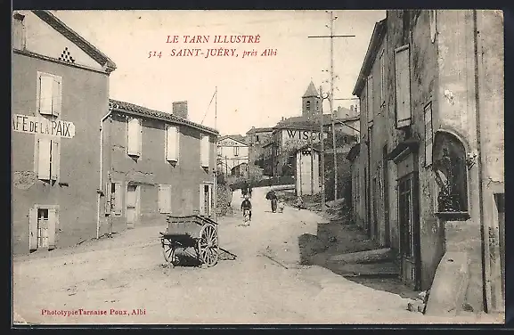AK Saint-Juéry, Rue animée avec charrette près d`Albi