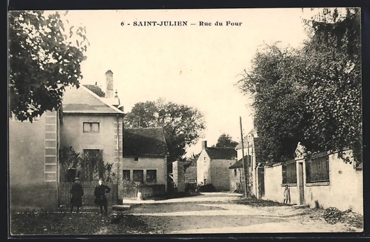 AK Saint-Julien, Rue du Four avec des passants et des maisons anciennes