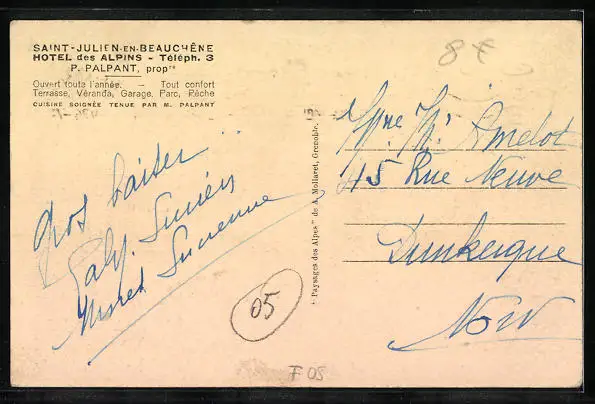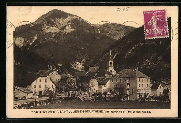 AK Saint-Julien-en-Beauchene, Vue generale et l`Hotel des Alpins