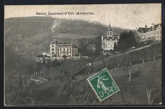 AK Saint-Laurent-d`Olt, Teilansicht mit Kirchturm