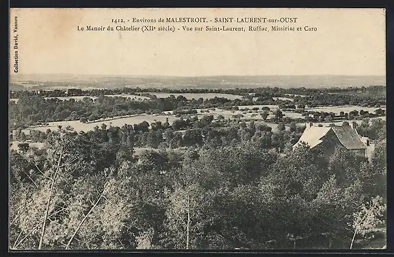 AK Saint-Laurent-sur-Oust, Le Manoir du Châtelier, XIIIe siècle, et vue panoramique environnante