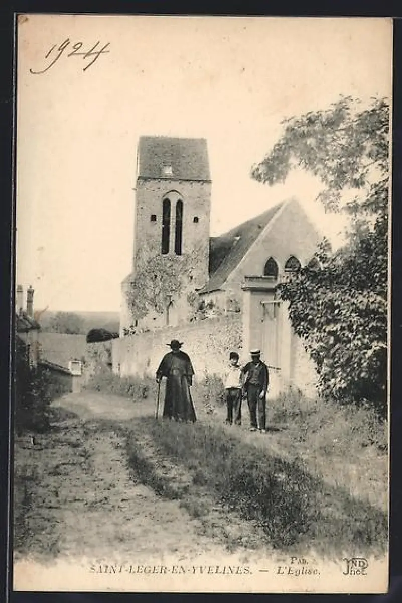 AK Saint-Léger-en-Yvelines, L`Église et passants sur le chemin